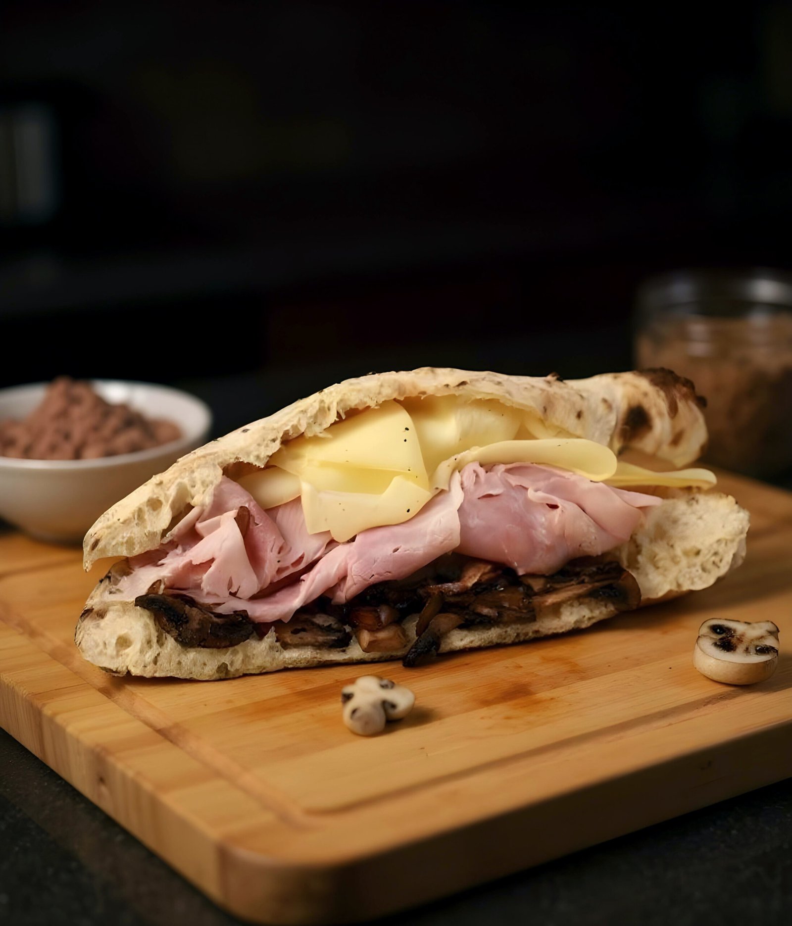 Panuozzo Bread, Prosciutto Cotto, Provolone Cheese, Grilled Mushrooms & Mushroom Spread.